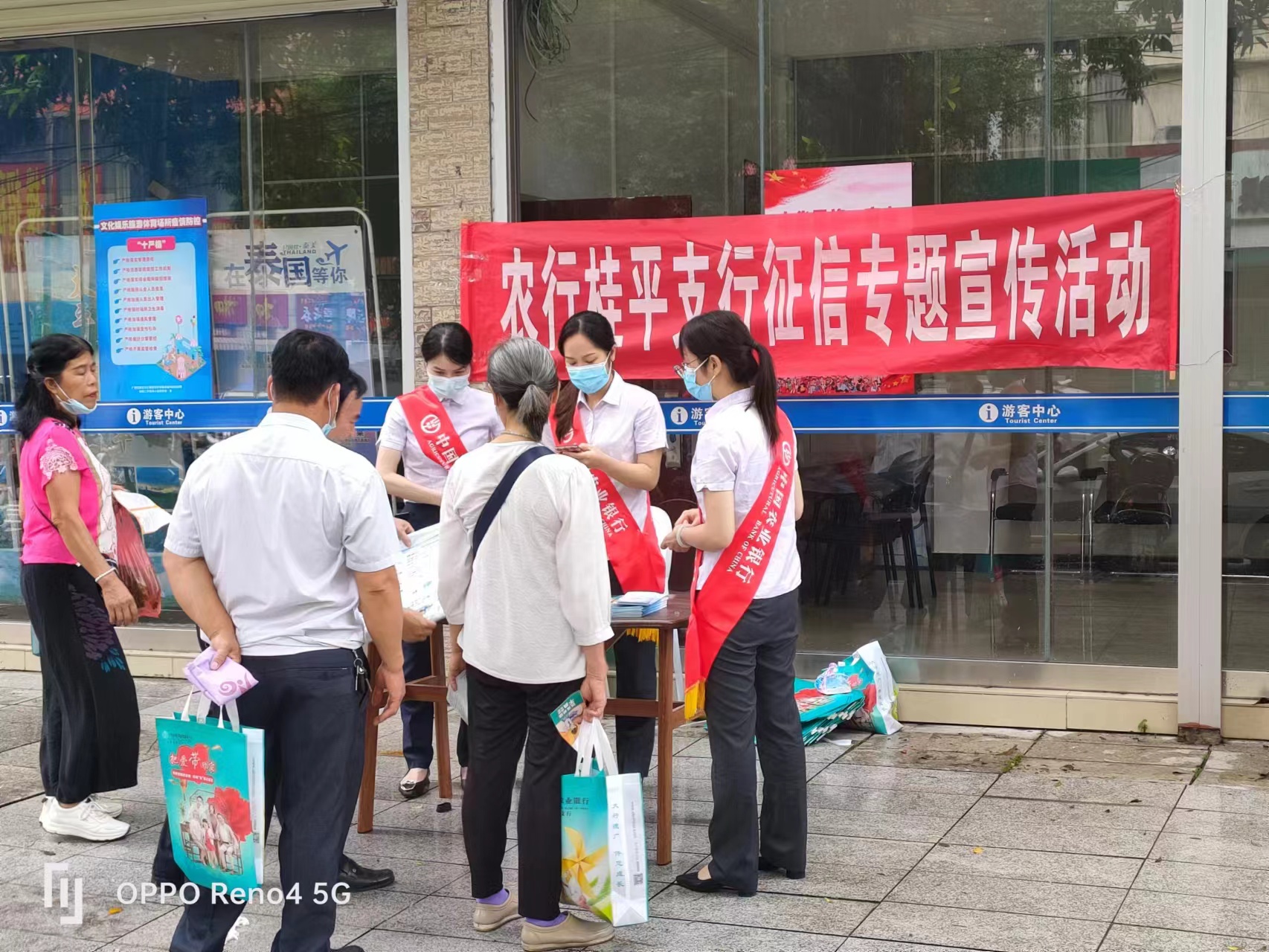 6月14日,人民银行贵港市中支征组成以黄滨副行长为队长的征信宣传队,开展“征信宣传万米行”骑行活动。征信宣传队身着宣传服装,以征信查询服务大厅为起点,绕附近的商圈、社区骑行宣传,向沿途群众发放征信宣传册,为群众解答征信基础知识,引导群众关爱个人信用记录。同日,农业银行贵港分行通过主动讲解、观看资料或互动问答等方式开展便民服务,增强征信宣传的趣味性及亲民度,引导群众正确理解征信政策,增强防骗能力和守信意识。