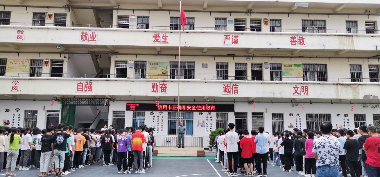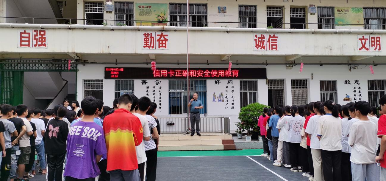2022年6月16日,我校全体师生进行“6.14信用记录关爱日”主题系列宣传活动,本次主要讲了安全、正确使用信用卡的问题,我校校长在升旗台发表了重要讲话,并联系实际生活,生动形象了讲了信用记录的问题,使得广大师生深受教育。