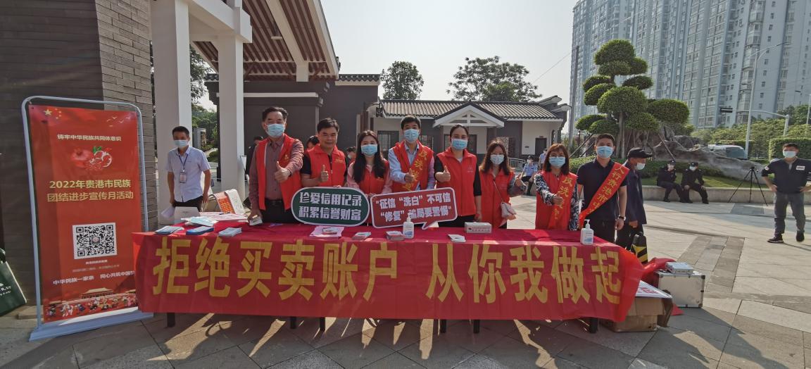 为全面贯彻落实习近平总书记关于加强和改进民族工作的重要思想,特别是关于铸牢中华民族共同体意识的重要论述精神,贵港市委宣传部等部门联合开展铸牢中华民族共同体意识暨2022年贵港市民族团结进步宣传月活动。4月8日上午,人民银行贵港市中支以此为契机,前往活动启动仪式现场与各民族群众开展交流,并借此为现场少数民族群众派发征信知识宣传手册,向群众讲解“如何查询信用报告”“如何维护良好的信用记录”等征信知识。活动获贵港市广播电视台、贵港新闻网全程跟踪报道。