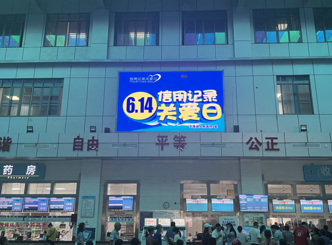一是通过LED滚动播放“树诚信新风尚,做文明医务工作者”“以诚为本,以信为用”“诚实守信,知行合一”等宣传标语。二是厅堂宣传,在门诊综合楼一楼大厅的电子显示屏上插播“6.14信用记录关爱日”专题海报,供就诊患者浏览。三是通过志愿者向来院就医的群众、单位职工普及政策法规和信用知识。