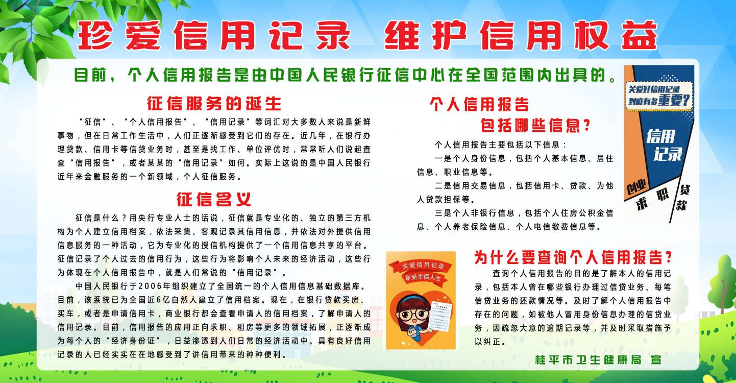 一是结合单位职责和工作实际,在局机关大院内醒目位置悬挂宣传横幅、摆放展板,广泛宣传征信服务的诞生、征信含义、个人信用报告是哪个机构出具、个人信用报告包括哪些信息、为什么要查询个人信用报告等征信工作相关知识。