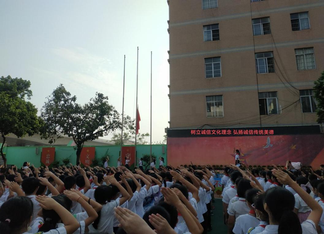 对于社会而言,诚信就是一股无法量化的道德力量,它既是维系社会运转的纽带,更是撬动历史进步的杠杆。我校举行了“诚信”为主题的升旗仪式。号召老师、同学们以诚信立身,做诚信之人。同时在校园一进大门的LED屏上滚动播放“树立诚信文化理念,弘扬诚信传统美德。”等宣传语,让全校师生未进学校门,已见“诚信影”,从而宣传诚信思想,营造诚信氛围。
