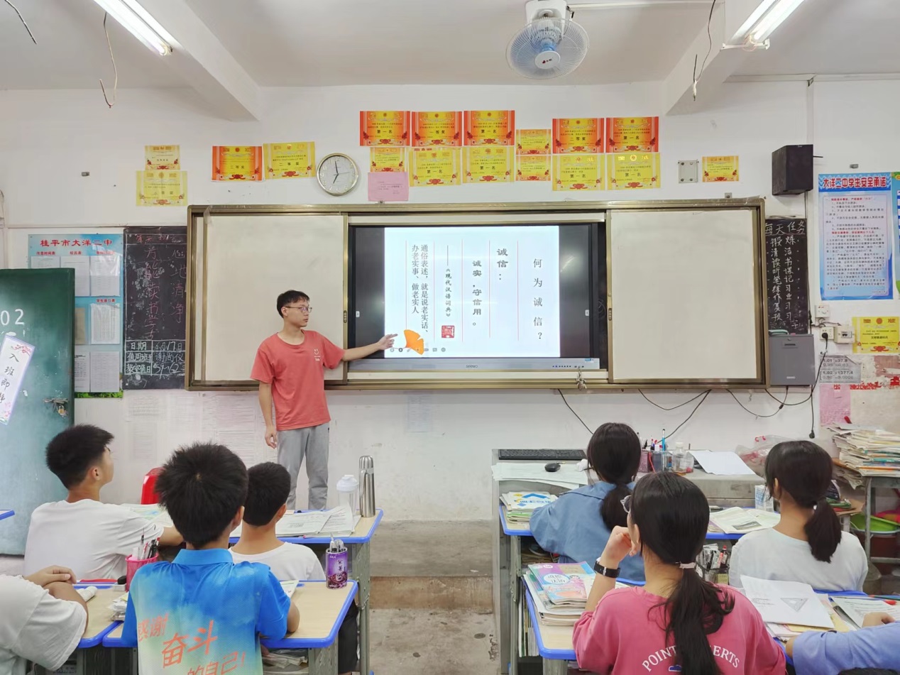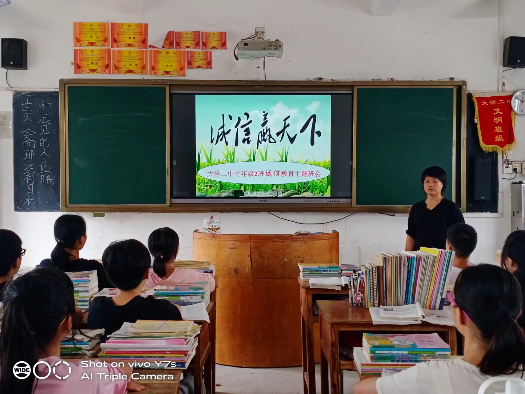 为了弘扬中华传统美德,培养学生良好的学习和生活习惯,增强学生的诚实守信的意识,教育引导学生诚实做人,树立正确的世界观、人生观、价值观,成为有理想、有道德、有文化、有纪律的一代新人,桂平市大洋二中开展了诚信主题教育系列活动。