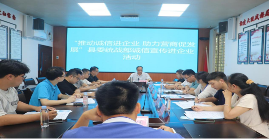 6月28日,为促进企业诚信生产和诚信经营,积极推进社会信用体系建设,弘扬诚信理念,让企业经营者做到依法守法经营,恪守诚实守信准则,保障消费者权益,增强社会责任感,县委统战部非公经济股组织企业代表开展“推动诚信进企业 助力营商促发展”主题宣传活动。