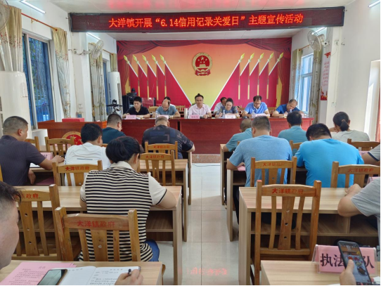 为弘扬诚信文化,积极培育诚信道德,全面推进社会信用体系建设,加强信用知识宣传教育,在全镇营造诚实、守信、自律、互信的社会信用环境。6月14日,大洋镇开展“6·14信用记录关爱日”宣传活动。